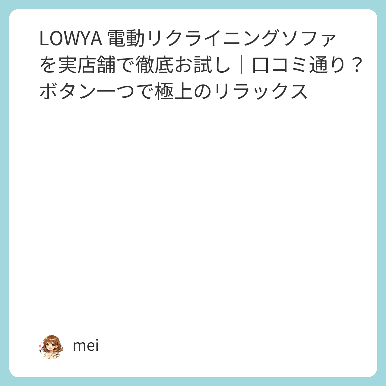 | 唯一の注意点 | リクライニング状態のまま立ち上がらないこと。ボタンで戻してから立ち上がる習慣をつけるのが大事 |